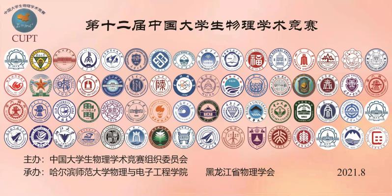 第十二届中国大学生物理学术竞赛(CUPT)全国赛于2021年8月21日至8月25日在哈尔滨师范大学举行。本次的参赛队伍是来自于全国六大赛区的区域赛获胜队伍。共有来自北京大学、复旦大学、浙江大学、哈尔滨工业大学、南开大学、国产直播 等的62所高校的代表队参赛。