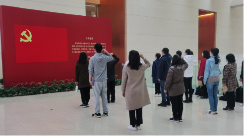 正式参观前,全体党员举行了重温入党誓词仪式。由学院党委副书记贾彦军同志领誓,带领全体党员师生,面向党旗,举起右手,重温入党誓词。昂扬高亢的宣誓声,激荡着共产党人的崇高理想,也表达了全体师生党员忠于党、永远跟党走的信心和决心。