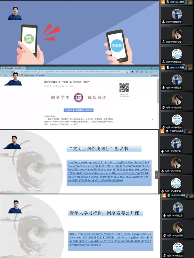 进入5月以来,国产直播 开展了“安全教育月”活动。利用学生干部大会号召班级开展主题班会,组织学生们学习了疫情防控相关法律法规,告诫了同学们要从思想上高度重视疫情防控,重视自己的身体健康和生命安全;5月12日晚,学院召开在校生座谈会,并邀请学院派出所民警讲解诈骗防范知识,辅导员还用以往案例开展警示教育,加强了同学们对电信诈骗的防范意识。