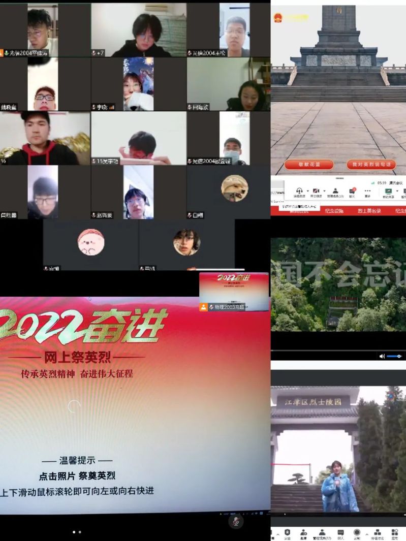 开展了2022年“清明祭英烈”主题宣传教育活动。由班委带动全班,通过线上会议的形式,结合“传承英烈精神,奋进伟大征程”主题,举行了升旗仪式。同学们在仪式中学习了习近平总书记关于崇尚英雄、缅怀英烈的重要论述。此次仪式激发了同学们学习英烈、崇尚英烈、争做先锋的热情动力。