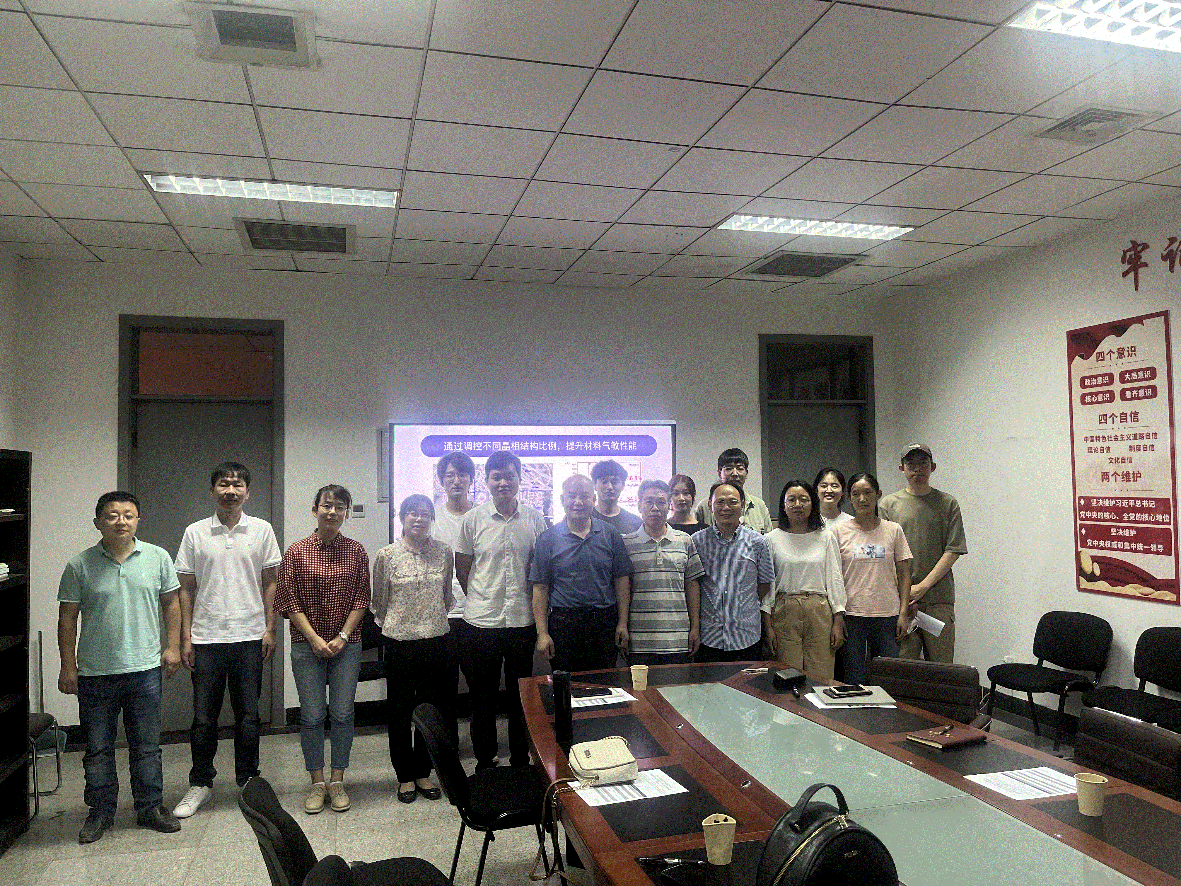 的曹静副教授介绍了同轴静电纺丝制备纳米线及纳米球壳在气体传感方面应用的研究。报告过程中,教师和学生们对报告内容进行了热烈的讨论。