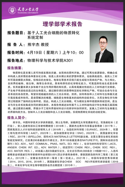 报告题目:基于人工光合细胞的物质转化系统定制